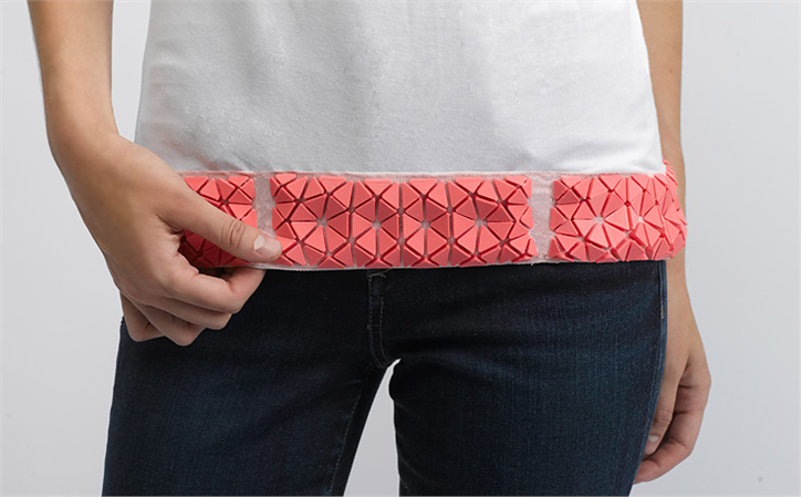 Pe lângă imprimarea pe țesături precum bumbacul și denimul, Jessica spune că imprimarea 3D poate „contopi” design-uri în țesături sintetice. Utilizarea materialelor de imprimare 3D semi-flexibile, inclusiv TPU 95A și Arnitel DSM, permit pieselor să se muleze pentru a se potrivi formelor corpului.