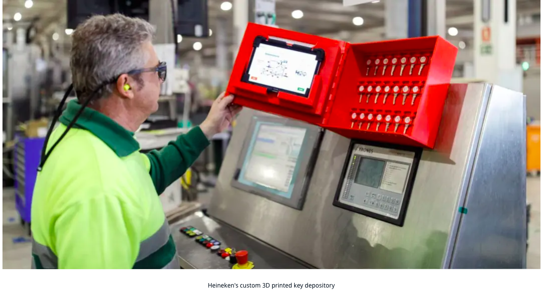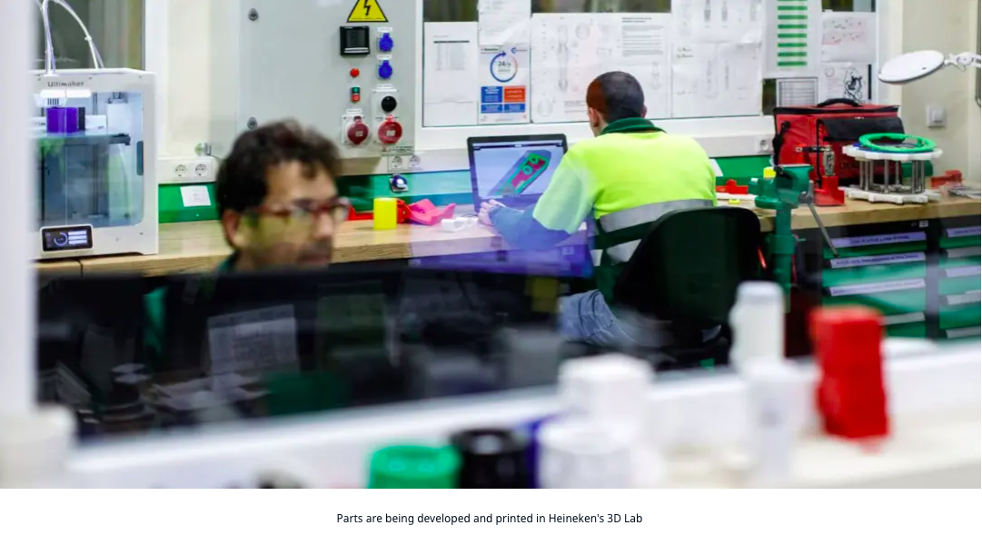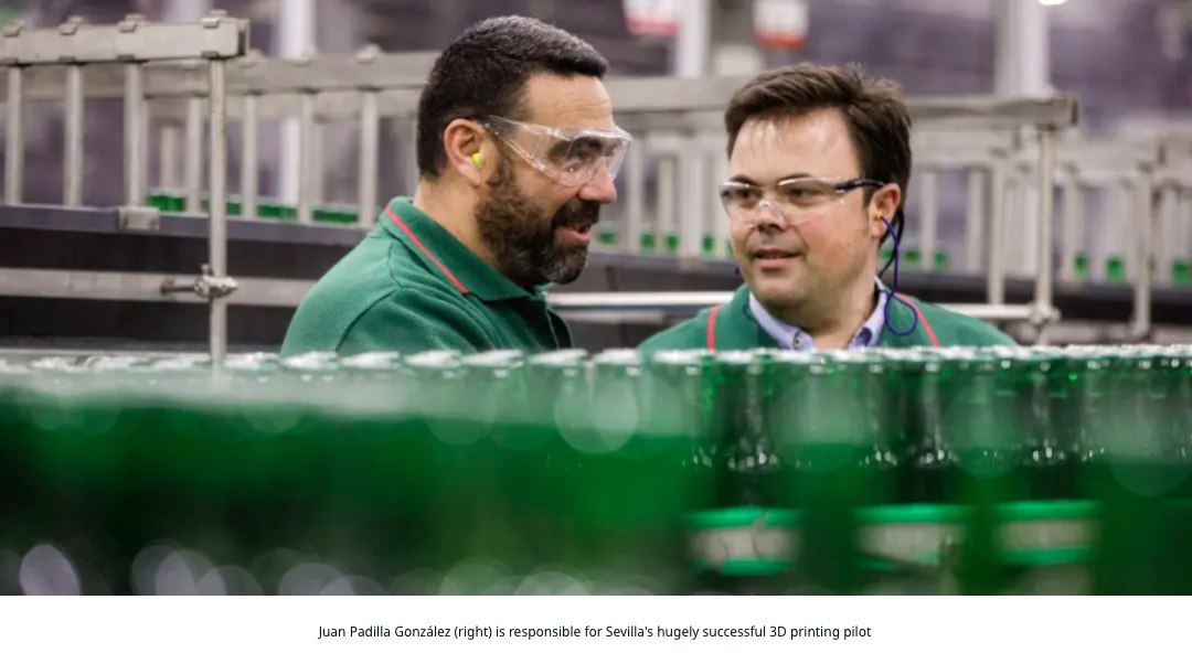Cu peste 150 de fabrici de bere din întreaga lume, Heineken este unul dintre cei mai mari producători mondiali de bere. O fabrică de bere din Sevilla, Spania, produce mărci celebre precum Cruzcampo, Desperados, Heineken și Amstel. Berea este preparată, ambalată și apoi expediată în toată Spania și nu numai. Managerul departamentului de ambalare, Juan Padilla González, a implementat imprimarea 3D pentru a crește timpul de funcționare și eficiența la berăria din Sevilla.