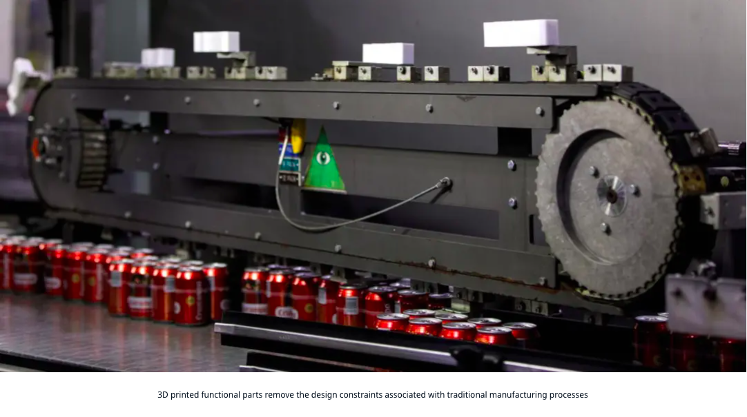 La fabrica de bere din Sevilla, echipa lui Juan a reușit să înlocuiască diverse piese reproiectate cu un design optimizat. De exemplu, o piesă metalică utilizată cu un senzor de calitate pe o bandă transportoare ar răsturna deseori sticlele, creând un blocaj sau aruncând sticle bune pe jos. Piesele imprimate 3D reproiectate au împiedicat această problemă, economisind sticle, bani și timp.