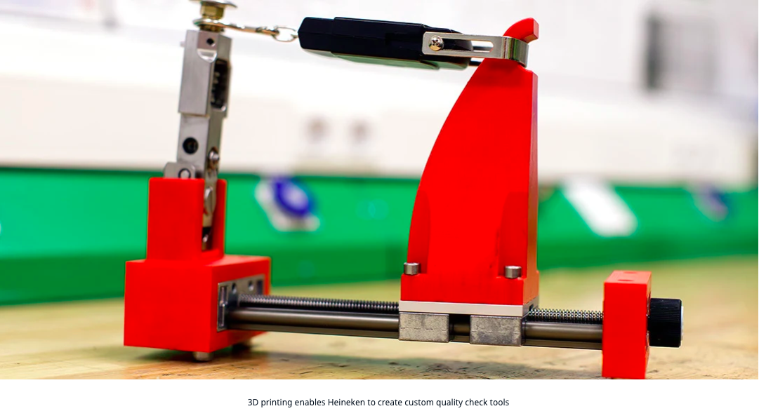 Prin imprimarea 3D a pieselor funcționale finite pentru linia de fabricație la cerere, Heineken a reușit să optimizeze funcționalitatea și disponibilitatea la timp. Prin ajustarea designului pieselor funcționale ale mașinii, Heineken a crescut eficiența liniei. Instrumentele personalizate au făcut ca întreținerea și schimbarea producției să fie mult mai ușoare și mai rapide pentru angajați.